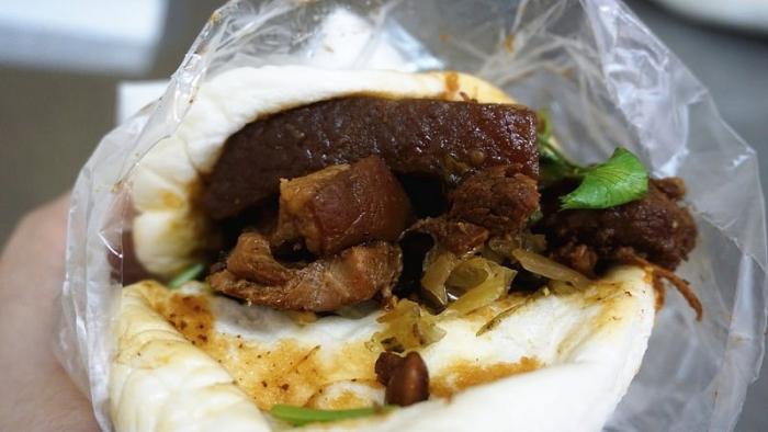 刈包之所以叫做虎咬豬的原因是因為白麵刈包蒸好之後很像是虎口!裡面包滿了五花肉,所以以前有人叫他虎咬豬!