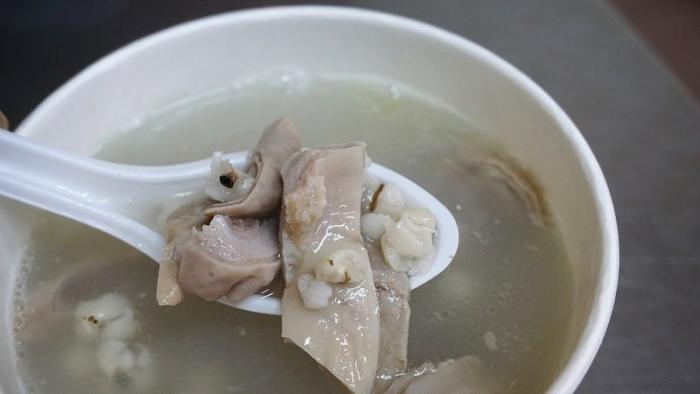 我很愛他們家的四神湯,以前我不喜歡喝四神湯,但喝過他們家就愛上!!!裡面有豬腸、豬肚、薏仁、山藥,料非常的多又實在,兩個人喝一碗還蠻剛好的。帶有 米酒香氣的清甜湯頭也很好喝,因為我自己不太愛米酒很重的味道,但是他們的湯有把味道煮到淡掉,帶有淡淡酒香但並不嗆鼻。