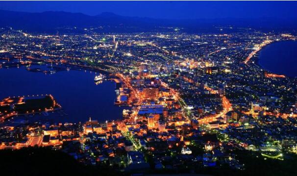 函館山是一處位於北海道函館市市區西部的山地。因其外觀形似一頭仰臥的牛,因此又名臥牛山。上山途中的各條坂道和兩側的洋樓是函館最有代表性的風景。到山頂可以選擇索道或者公交車,如果時間充裕春夏季節也可以徒步登山,從山腳到山頂需要一個半小時。山頂有觀賞夜景的觀景平臺,夜晚可以俯瞰到被譽為世界最美三大夜景之一的函館夜景,另外兩處是香港維多利亞港和那不勒斯。海灣風貌是函館夜景的特色,相比很多城市千篇一律的夜景,這裡非常值得一看。天色尚未全暗的時候是最美時分,夜空顯現出幽藍的色彩。整個港灣燈火璀璨,美不勝收。