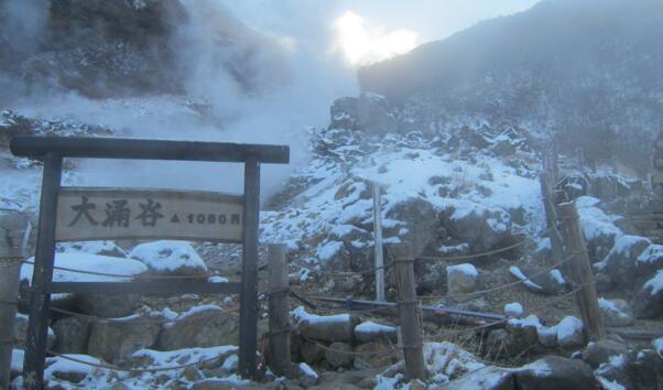 大涌谷是位於東京近郊溫泉勝地箱根的一個著名觀光景點。在這裡可以看見富士山和箱根群山。大涌谷是大約40萬年前火山大噴發形成的火山口遺蹟,現在每天仍不斷地由地下噴出大量的水蒸氣和火山瓦斯。走近大涌谷,會聞到火山特有的撲鼻的硫黃味,呼吸道有問題的朋友不建議去。大涌谷的特產是黑玉子,就是黑雞蛋,黑雞蛋用溫泉蒸煮,當地傳說,吃一枚黑雞蛋可以延壽7年。